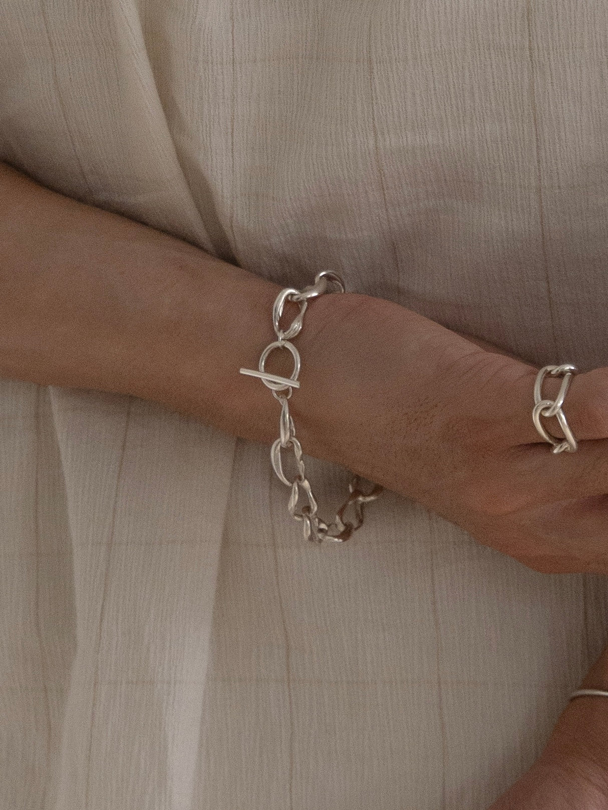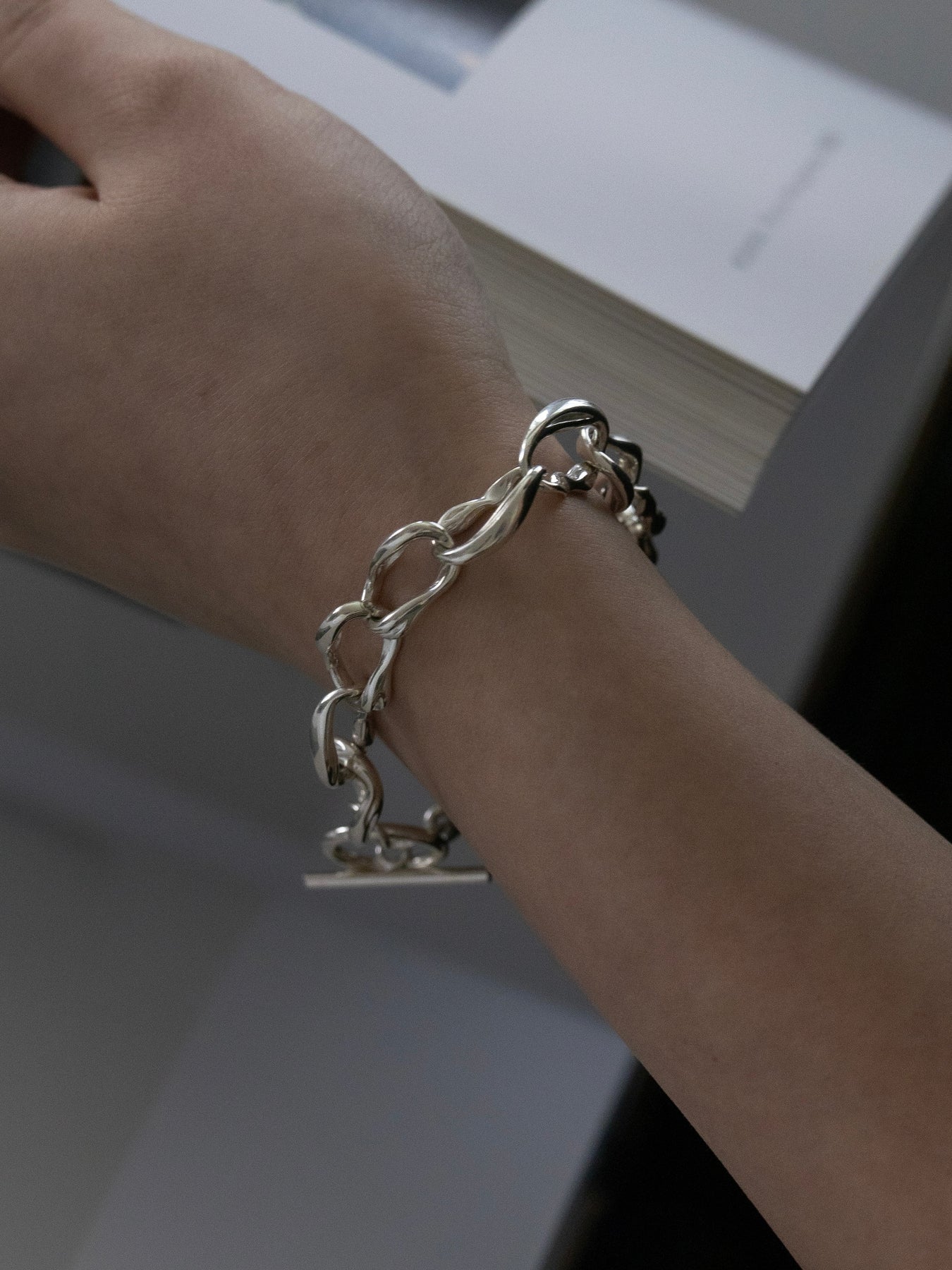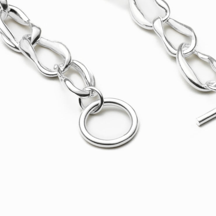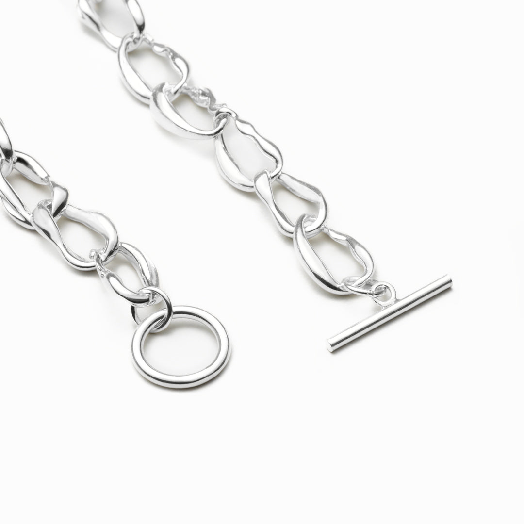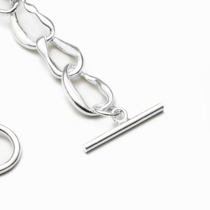 貝殻をモチーフにした個性的なシルエットのチェーンブレスレット。
