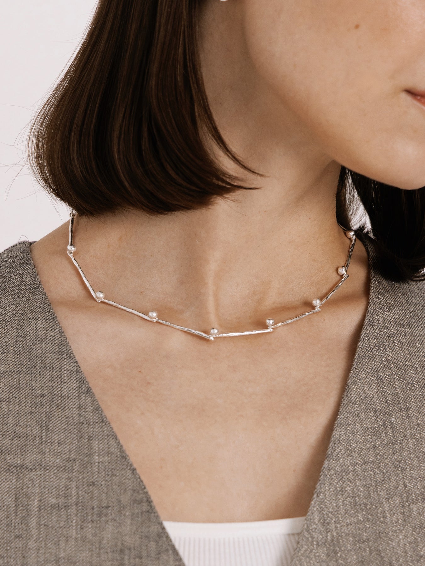 モチーフはシンプルな "点" と "線" ですが、あえて整いすぎた形にはせず、手作業ならではの揺らぎを残すことで、ブランド創設時に感じた「ここからが始まり」という未完成な状態を形にしました。